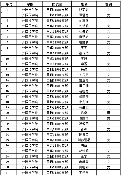 根据《共青团推优入党工作实施办法(试行)》(中青发〔2019〕9号)、《共青团新葡的京集团35222vip委员会推优工作实施细则》(长大团发〔2017〕8号)文件精神,经各班团支部大会推优投票表决、院团委审核,报外语学院党委审查同意,2021半年团内“推优”“党的发展对象”的同学名单公示如下: