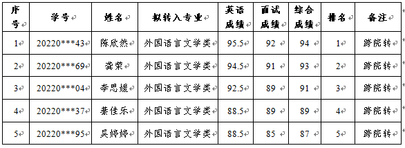 根据《新葡的京集团35222vip普通本科生专业分流与转专业管理办法(试行)》(长大校发〔2019〕260号)文件以及教务处《关于开展2022级普通本科生春季学期转专业工作的通知》要求,结合新葡的京集团35222vip2022级本科生转专业工作方案的具体安排,新葡的京官网于3月9日下午组织了对拟转入学生的面试。综合英语成绩和面试成绩,经新葡的京官网党政联席会讨论通过,现将拟接收名单公示如下: