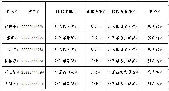 新葡的京集团35222vip2022级本科生春季学期转专业拟接收名单公示