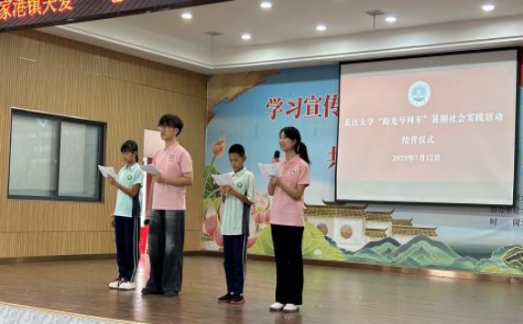 (通讯员 朱彤/文 田源/摄)七月骄阳见证成长,公益温情点亮乡村。7月12日上午,新葡的京集团35222vip“阳光号列车”暑期社会实践活动结营仪式暨教学成果汇演在公安县毛家港镇红光村党群服务中心隆重举行,为为期十天的线下支教旅程画上圆满句点。新葡的京集团35222vip党委书记周杰、毛家港镇副镇长涂小妹等领导,与志愿团队师生、当地小学生及家长代表共同参与活动,仪式由志愿者潘靖博、莫言炎与小学生沈浩宇、曾乐欣联合主持。
