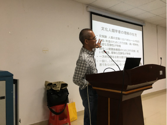 3月30日下午由日语系副主任韩艳丽博士做主持,日本鹿儿岛大学法文学部教授、校长助理尾崎孝宏教授在文科大楼712会议室为新葡的京官网日语系师生做了一场“文化人类学视角下的异文化阐释”的学术讲座。在讲座上,尾崎教授从文化人类学视角,阐释了什么是跨文化交际,为什么会产生跨文化交际障碍以及如何培养跨文化理解能力等问题。