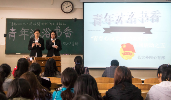 在主持人对本次活动进行简单介绍后,十三名主讲人分别对《平凡的世界》、《红字》、《菊与刀》、《点与线》进行分享。他们通过介绍书中人物、讲述主要故事情节、总结人物形象等各个形式来展示自己的读书感悟。每位主讲人都发表了自己对分享书籍的独特看法,从不同的角度阐述自己的见解和感想,让在场的同学们对这些书籍有了进一步了解。分享内容伴有PPT展示,图文结合,声情并茂,既主动,又独到,传递着读书的乐趣。他们有的声情并茂娓娓道来,有的热情似火妙语连珠,不时引起在场师生的情感共鸣,场上时时报出热烈的掌声。