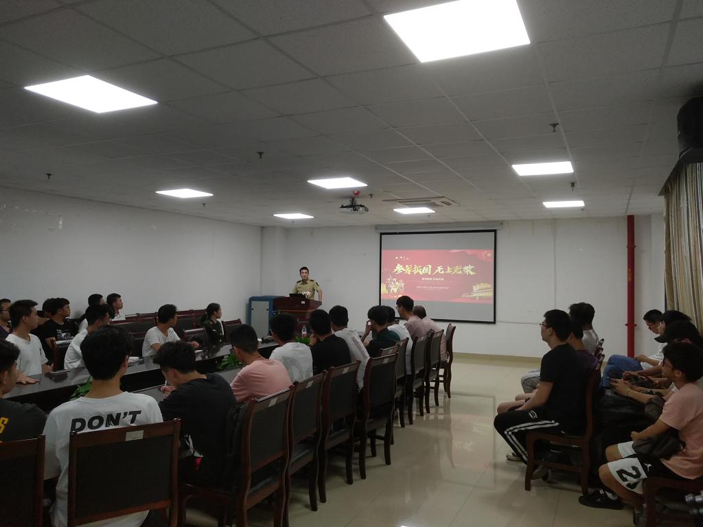 活动第一项,全体起立奏唱国歌,在庄严肃穆的气氛下,与会人员对军人的敬佩之情油然而生。就征兵政策相关内容,韩王戴贤宣讲员从入伍要求、当兵的十大好处、入伍基本原则三方面进行了详细的介绍。他认为,当兵是一次珍贵的学习机会。在两年的时间里,除了积累一笔资金以外,还能收获一份战友情。“当兵是一种义务,也是一种责任。”随后,管理学院退役军人夏鑫上台发言。介绍了自己当初决定入伍的原因和经历,也热情地和同学们分享了两年军旅生活的所感所思。并播放了一段热血的征兵视频,让在场青年学生对部队生活产生了向往。两位退役军人的宣讲,字字情真意切,句句体现了新时代青年立志从军报国的壮志豪情。