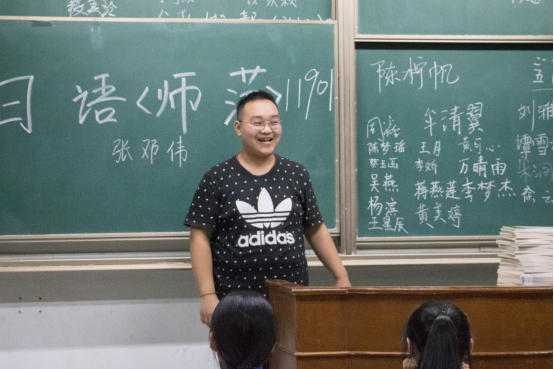 见面会伊始的自我介绍环节,教室里便此起彼伏地充斥着热烈的掌声。同学们第一次站上大学教室的讲台上,在黑板上书写下自己的名字,彰显着各位新生们已经在自己大学生活的起点上留下了浓墨重彩的一笔。紧接着,他们又用精彩的自我介绍让其他同学认识自己。他们不仅介绍了自己的家乡、兴趣爱好等,有的同学甚至讲到了自己的外号,以新奇而有趣的方式让其他同学了解了自己;有的同学说自己喜欢哆啦A梦,因此身材也向着它发展……精彩纷呈的介绍让整个见面会轻松而活跃。其中,英语类六班的老师则给同学们提出了一个小规则,让本就精彩的自我介绍更加别开生面。老师要求同学们在介绍自己前,先回忆一遍在自己前面做自我介绍的同学的名字,说说自己的前后左右是谁,然后再用家乡话进行自我介绍。于是大家听到了来自湖北、山东、广东、江苏、天津等各个地方的同学们所讲的方言,在感受到地域文化差异的同时,也感受到了大学的丰富多彩。