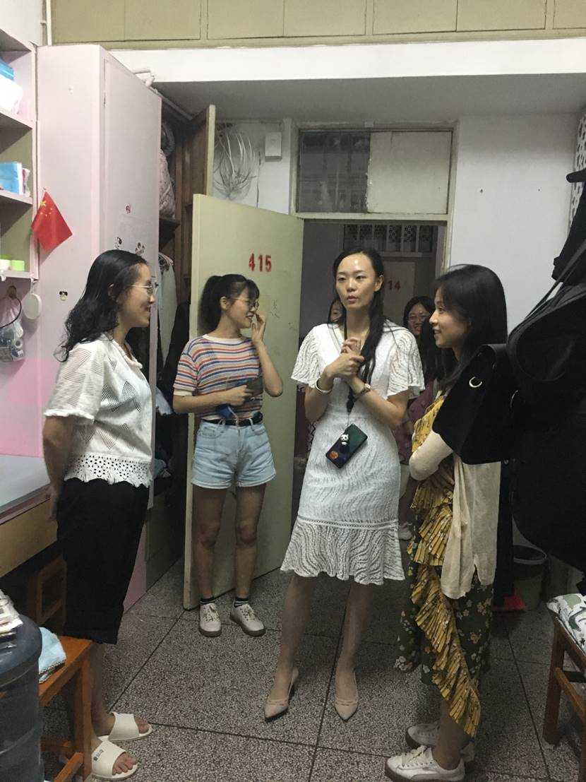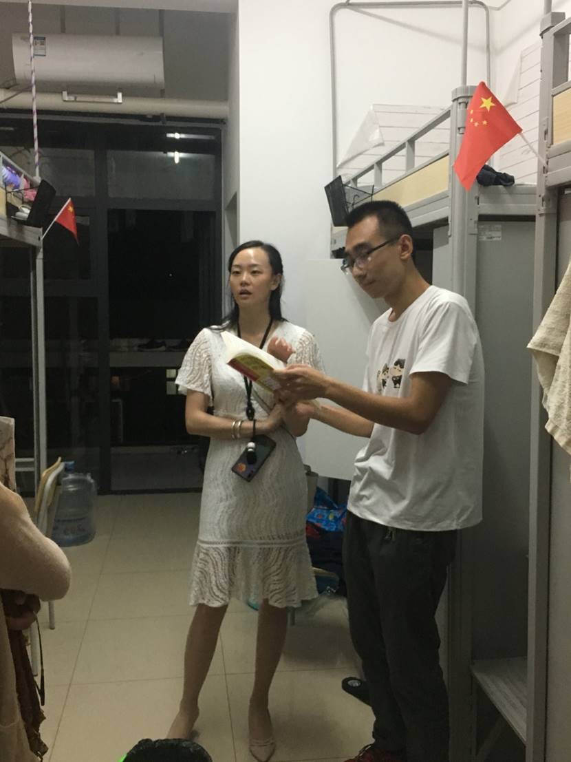 国庆佳节将至,为了提高同学们的安全防范意识,2019年9月27日晚21点,新葡的京官网分团委书记杜岳青老师和研究生学生会干部应婷,颜倩等人一起走访了学生宿舍,就同学们的学习生活情况进行了解和交谈,并嘱咐大家注意假期安全。