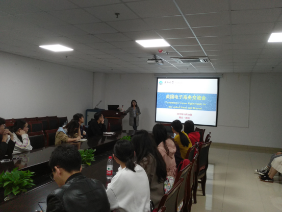大学生就业问题一直是社会关注的热点话题,为了帮助新葡的京集团35222vip广大学子树立正确的就业观和择业观,了解就业过程中可能出现的问题,1022日晚上,新葡的京集团35222vip在文科大楼712会议室开展了主题为美国电子商务交流会——把握就业流程,注重就业信息收集与处理”就业指导系列讲座第一讲,讲座由美国硅谷穿业者田军女士主讲,2016级部分学生参加了本次讲座。