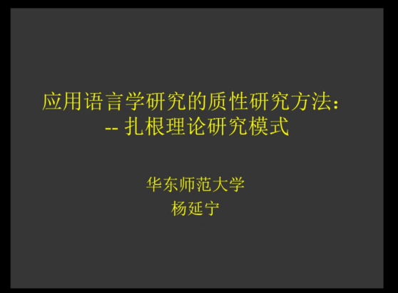 杨教授主要分享以扎根理论研究模式的质性研究方法,首先讲解质性研究方法与量化研究方法的不同思维方式,进而引出质性研究方法的研究要点同时简要介绍质性研究的方法。接着介绍在应用语言学领域中质性研究的基本模式以及资料收集方式。杨教授通过举例来着重讲解扎根理论研究模式的来源,研究思路,资料收集方式,资料分析阶段,资料编码等,并为我们分享了针对扎根理论的相关书籍。然后杨教授分析扎根理论研究模式在质性研究中不同阶段的操作特征,涵盖该研究模式的研究设计的相关步骤,资料收集的相关问题,资料分析阶段涉及的编码问题,以及理论构建的方法。最后,杨教授在扎根理论的检验与应用上,指出该理论的优势与局限性。