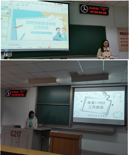各班按照学院通知要求,积极认真地组织了安全主题班会,同学们借助ppt宣讲、精彩故事分享、精彩小游戏、趣味问答等多种方式让班会活动趣味盎然,寓教于乐,取得了较好的教育效果。各班班主任均应邀参加了此次班会。