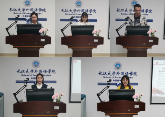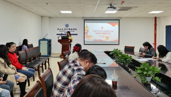 (通讯员/杨欣欣20214287点,外国语学院研究生在文科大楼712举行2021年4月政治学习会议参会人员为研究生辅导员许老师及全体研究生