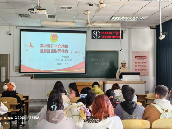 此外,英语12505团支部在13教126教室举办了主题为“深学笃行全会精神,挺膺担当时代使命”示范性团日活动,集中学习习近平总书记近期重要讲话精神,并围绕“荆州高质量发展与我的专业”展开热烈讨论。支部全体30名团员积极参与,活动由副书记姚嘉睿主持。