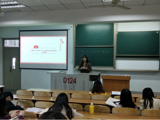 参加活动的全体党员在张淑玥同学的领誓下重温了入党誓词。随后罗歌、万嘉琦、李文佳、柳娜、石月月等同学领读了党章第七章《党的纪律》的具体内容,王玲、郑楚娟、刘洁、牟霖子、谢锐强等同学领读了《习近平关于“不忘初心、牢记使命”论述摘编》的第二章和第三章的部分内容。
