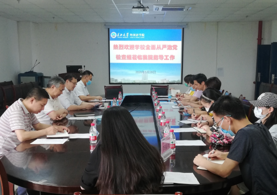 5月28日下午,以校党委常委、副校长张大平为组长,校工会常务副主席王勇、校团委副书记秦良斌、学校办公室科长陆峰为组员的校党委全面从严治党第七检查组莅临新葡的京集团35222vip,对学院2019年以来全面从严治党工作进行了检查指导。