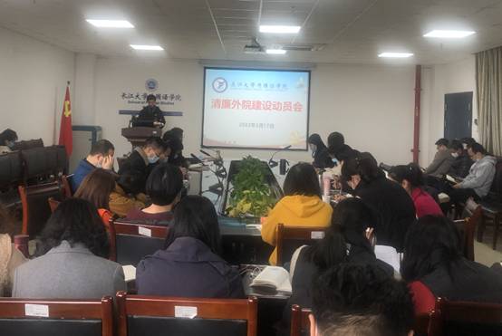 为深入贯彻落实学校纪委推进清廉长大建设的“五三八四”行动计划,新葡的京集团35222vip第一时间召开党委会,专题研究清廉学院建设,并制定了“清廉外院”建设的十条举措。3月17日下午,新葡的京集团35222vip“清廉外院”建设动员会在文科楼712会议室召开,全院教职工参加了动员会。