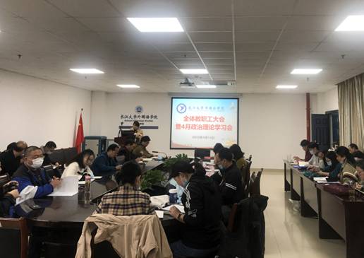 4月14日下午,学院召开4月教职工大会并开展政治理论学习,会议由院长谈宏慧主持。教工党员在文科楼712会议室参会,其他教师通过腾讯会议参会。