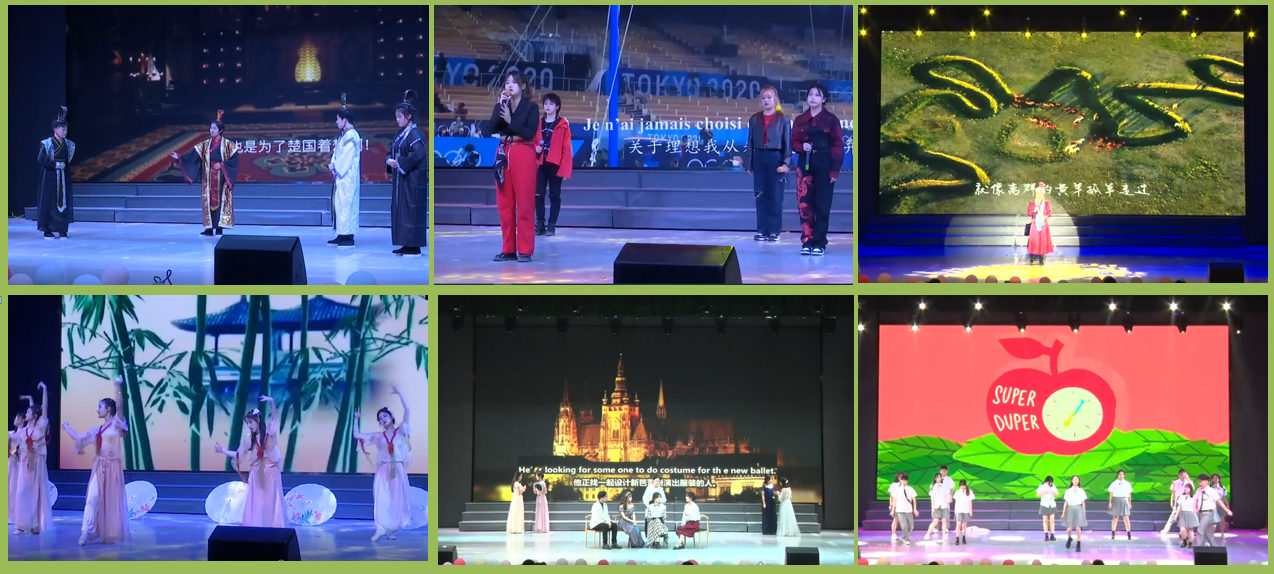 闭幕式文艺汇演在精彩的舞蹈中开场。分为“盛世华章,继往开来,初心难忘谱新曲”“激扬青春,强国有我,英姿奋发正当时”两个篇章。整台晚会彰显特色、突出专业、精彩纷呈,线上观众热情高涨。汉语、英语、日语、俄语、法语5个语种演唱的歌曲《追梦赤子心》,带领观众领略不同语言的魅力;笛萧合奏《无羁》,古风古韵,回味无穷;外文剧团呈现的经典剧作《Midnight in Poris(午夜巴黎)》,地道的英语、绅士且高雅的表演、华丽的场景深深打动着观众们的心;日语配音节目《辉夜姬大小姐》、教师韩艳丽博士倾情演唱的蒙语歌曲《忘不了》等节目全面展示了不同语言的文化底蕴与特色……新葡的京集团35222vip师生用丰富的艺术形式展现多彩校园文化生活。颁奖晚会在合唱《光荣啊,中国共青团》中圆满落幕。