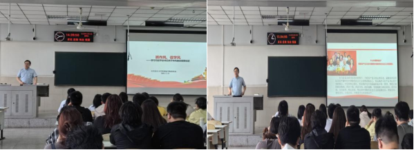 随后,程坤以“告别‘内卷’拒绝‘躺平’--从心态变迁看Z世代青年奋斗精神培育”为主题讲授党课,他以“内卷”和“躺平”为例分析了Z世代青年在当下社会环境中的心态变化和形成原因,通过分享优秀青年奋斗事例,引导同学们树立正确的奋斗观,保持积极进取的精神状态,在新时代的浪潮中勇担使命、奋力拼搏。