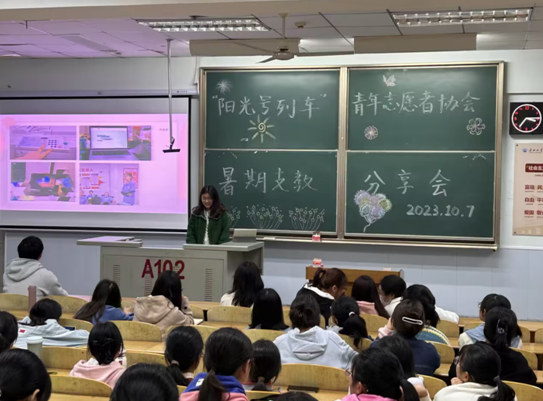 (通讯员 邓月红)10月7日下午,“阳光号列车”青年志愿者协会在13教A区102开展2023年“志愿拓梦,共享成长”暑假支教分享会。协会工作人员邀请了5位参加本次支教活动的人员作为主讲人,近100名同学参与此次活动。