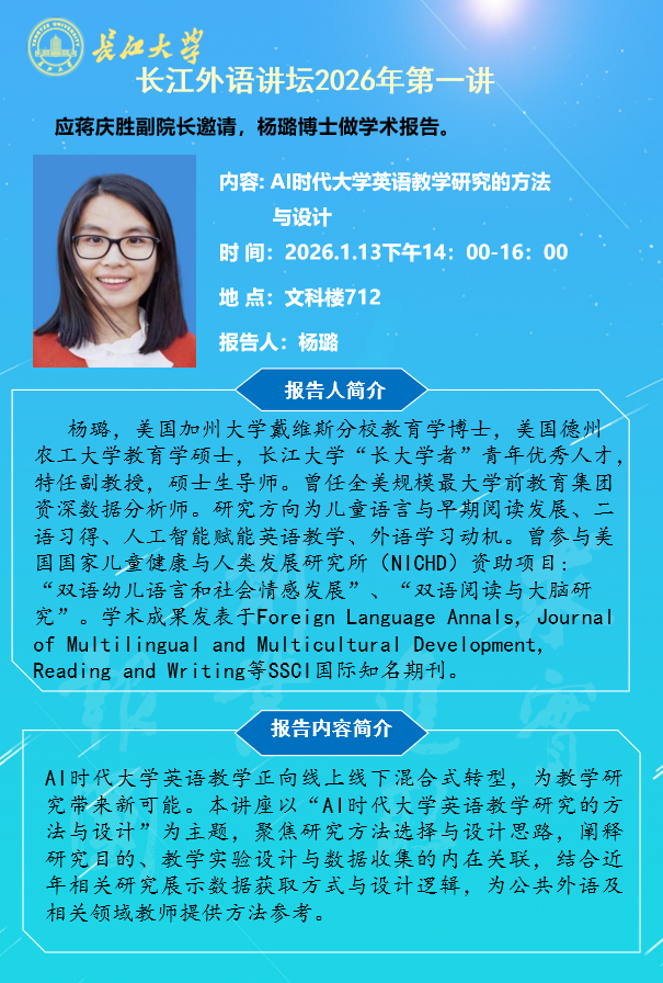 - 长江外语讲坛2026年第一讲:AI时代大学英语教...01-09